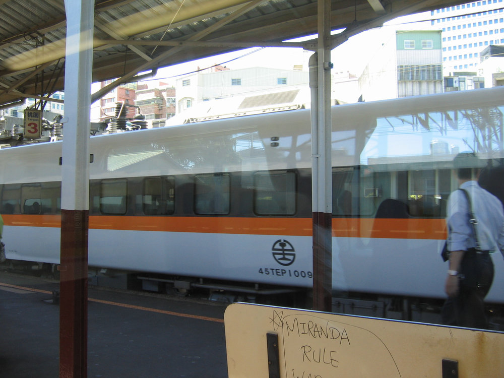 結果怎麼又睡過頭只好放大絕 orz 到台北拿完簽證之後,坐著莒光號回中壢走走。天氣很好,跟最近南部動不動下雨的情況似乎差很多(笑)。 剛上車碰到兩個可愛的外國老先生老太太提著行李箱,真是相當妙的一件事情,不知道他們準備去哪裡呢?然後還碰到一位很有個性的人,原本以為很高,結果跟我差不多而已(囧)。 在桃園站待避的時候,發現原先停著的太魯閣號居然出現了(!!)。只能說真是漂亮阿,外型跟高鐵有得比。 離開系館前,這個景似乎常常出現阿XD。 跟老蔡坐到了新版(?)的區間車,博愛座還用了特別的紫紅色。不過說真的:這種軟毛的座椅,萬一飲料打翻在上面那就糟了阿,所以總覺得好看的成分似乎比較大。 像捷運的資訊顯示面板。 剛離開中港轉運站已經是0:52分了 凌晨三點半的高雄公車站。